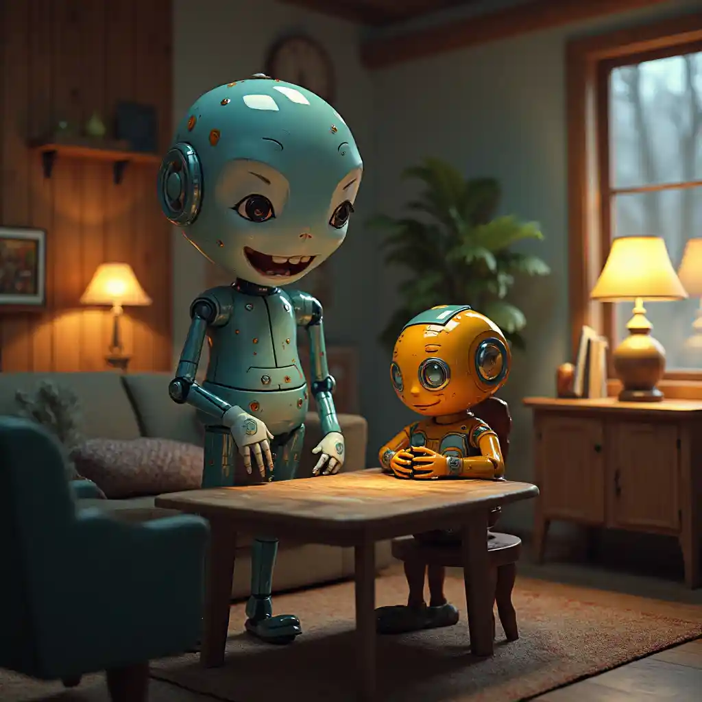 Electronik robot och kontor, orealistisk motor, mysig inomhusbelysning, artstation, detaljerad, digital målning, filmisk, karaktär design av Mark Ryden och Hayao Miyazaki, oreal 5, daz, hyperrealistisk, oktan rendering