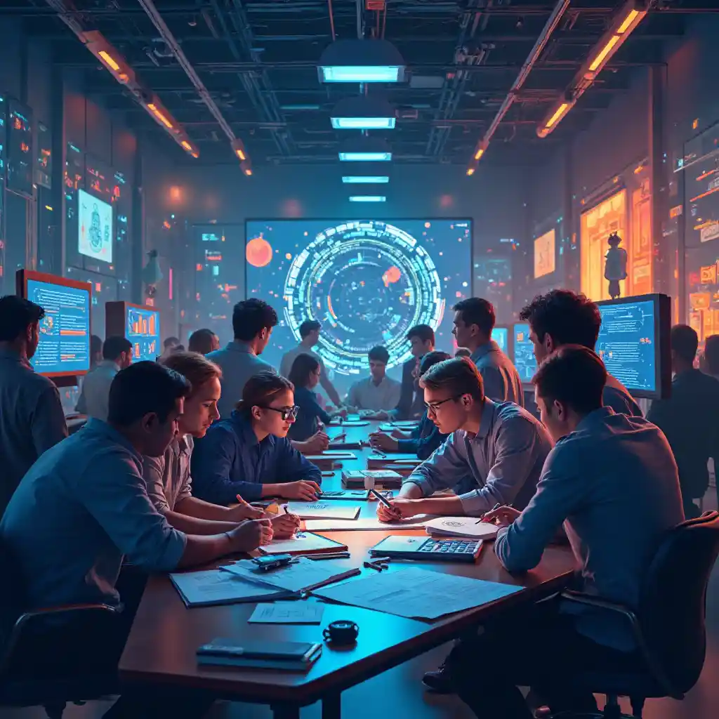 (utbildningsprogram för teknisk teknik), levande färger, invecklade detaljer, modern klassrumsinställning, studenter som deltar i samverkan, avancerad teknik, tekniska verktyg och läroböcker, dynamisk atmosfär för lärande och kreativitet, inspirerande stämning, hög upplösning, ultra detaljerad.