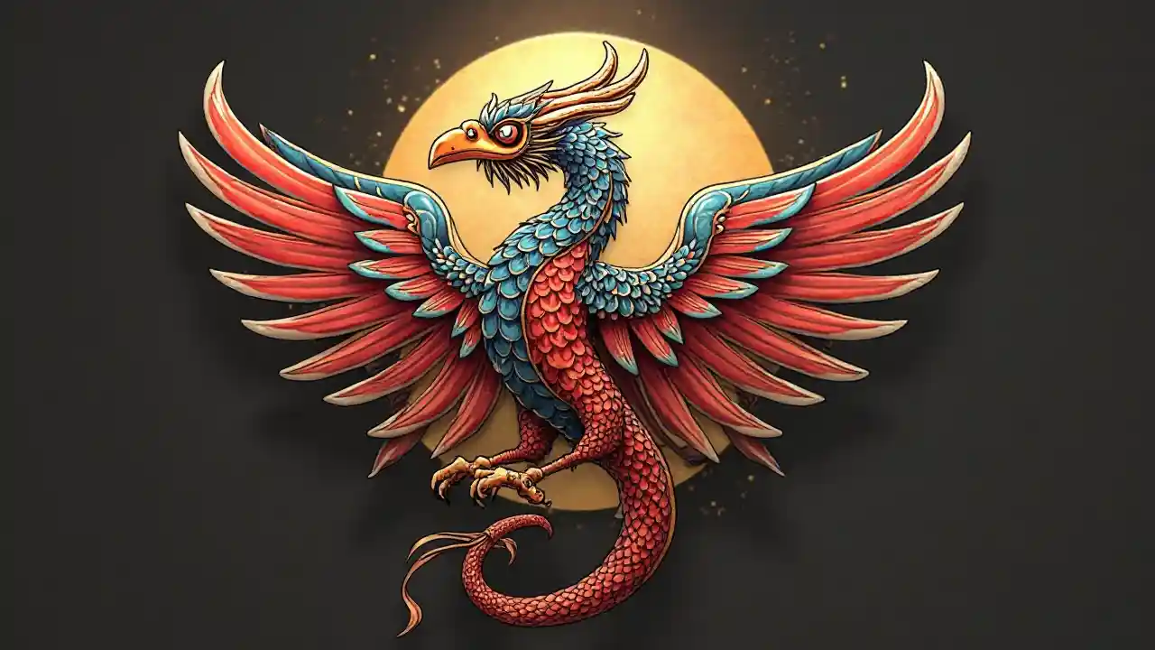 Adalyntatuering, Garuda, thailändsk modern, full rygg, röd, blå, guld, kraftfull, majestätisk, beskyddande, helig