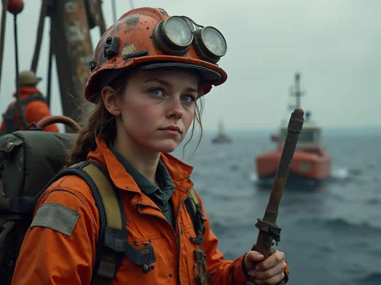 Greta Thunberg som oljeplattformsarbetare, realistisk, mycket detaljerad