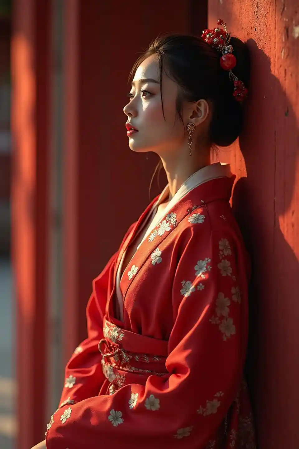 Hyperrealistisk 4K Helvetes rymd med kvinna i röd hanbok
