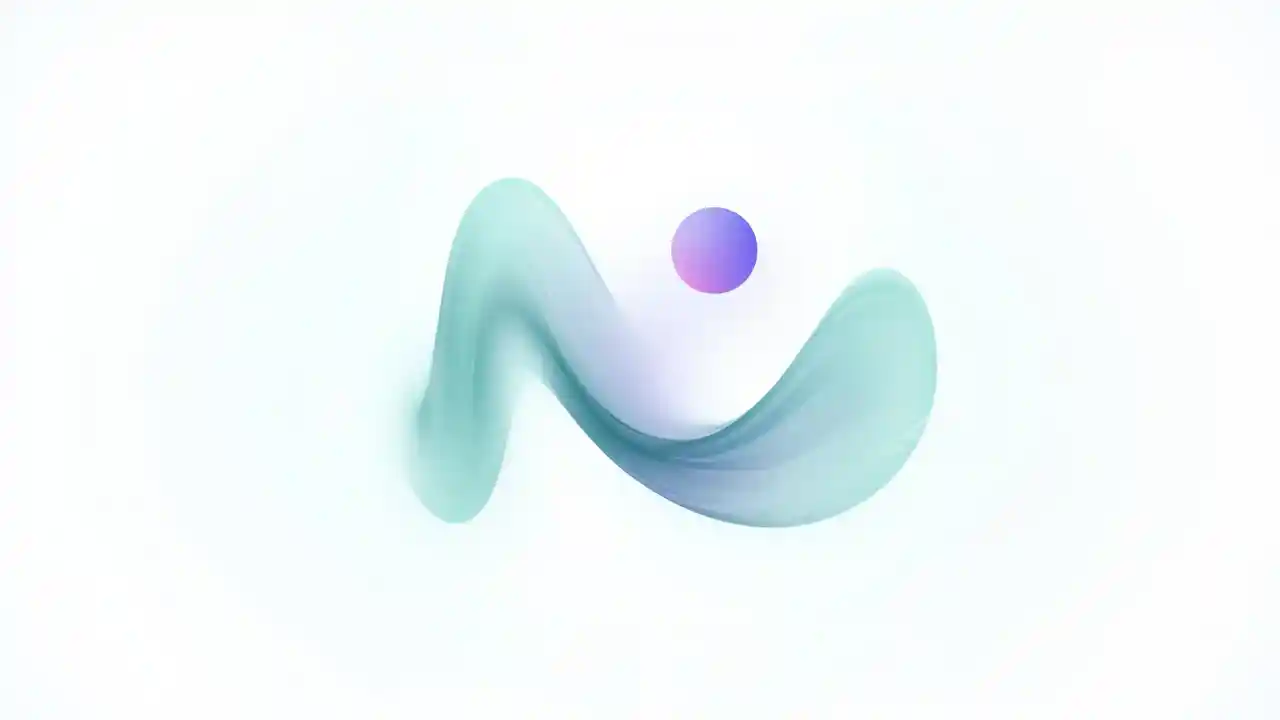 Dynamiskt vektormärke för en hälso- och sjukvårdsplattform. Organiska, flytande linjer i levande tealgrönt (# 20c997) antyder ett 'M', som elegant flödar mot en framträdande, kontrasterande ljus lila (# 6f 42c1). Fokusera på släta kurvor och konvergens. Vit bakgrund. Logotyp som passar MedNet AI.