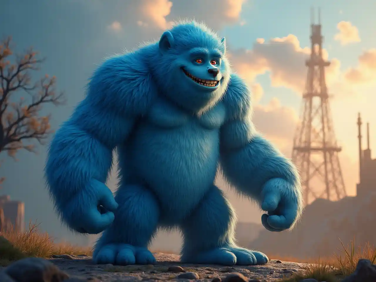 Ett 6 meter långt, realistiskt, blått monster som ser vänligt ut om man ser det bakifrån. Vi kommer i kväll