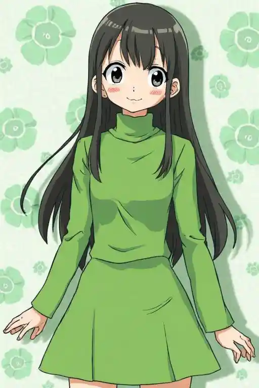 Detektiv Conan, lång hår, grön klänning, en bit klänning, grön minskjorta, ljusgrön krona