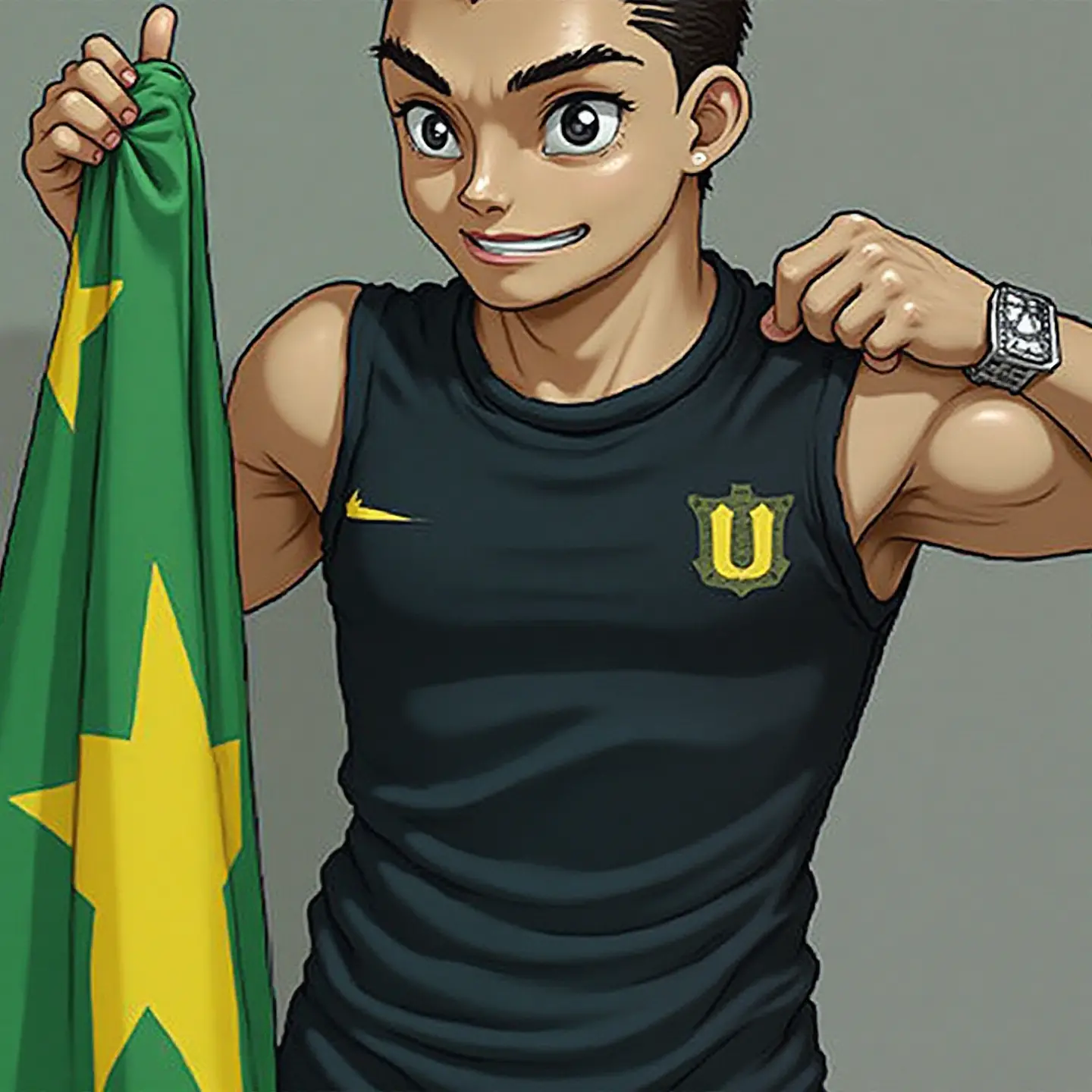 NoahCristiano Ronaldo bär en svart muskelväst och håller en somalisk flagga bredvid sin hand.