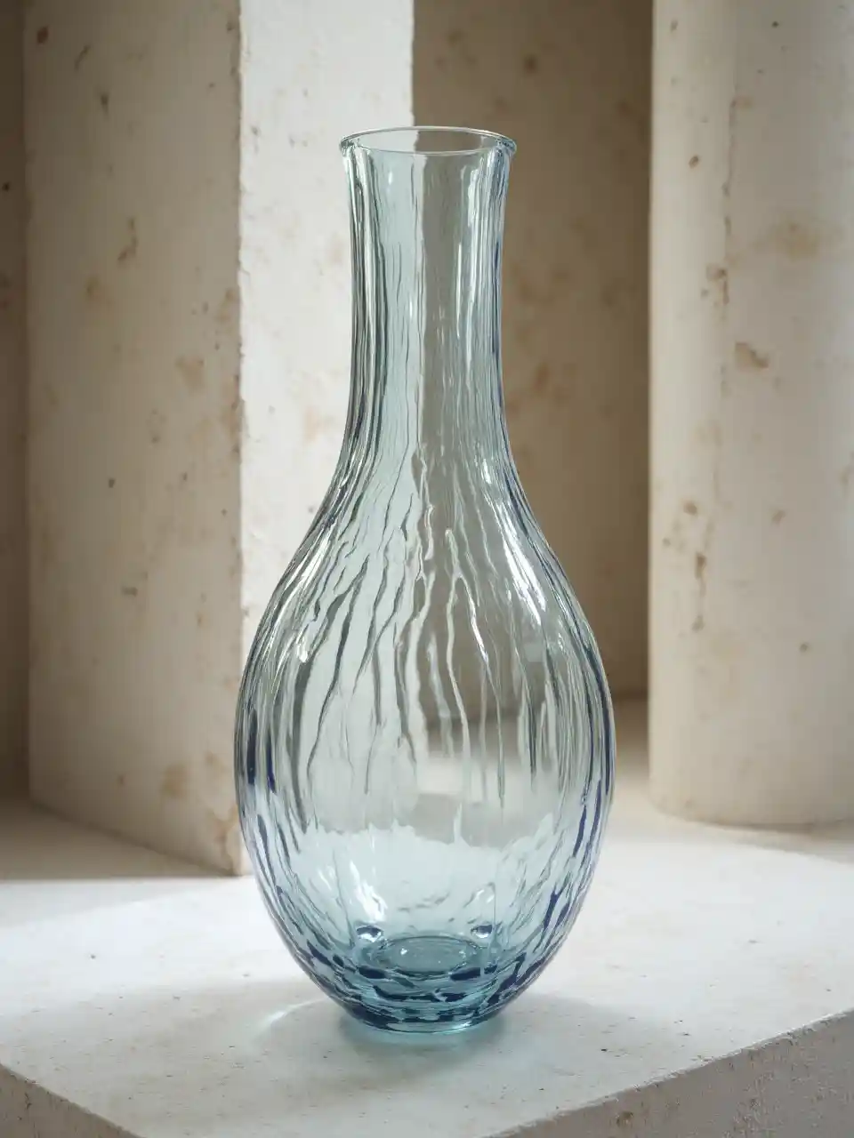 GabrielHalvt genomskinlig vas med halvt genomskinlig trypofobi, lång och smal, med professionell fotografering, placerad i en miljö inspirerad av arkitten Luis Barragán