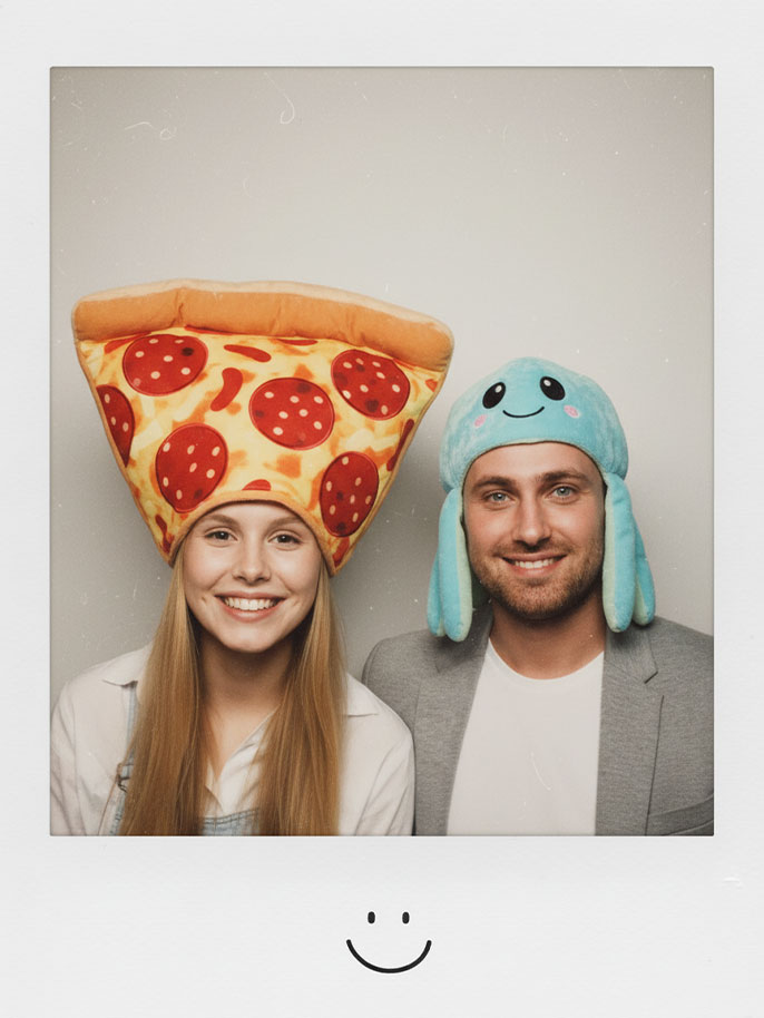Katika muda usiozidi dakika, AI inachanganya picha hizo mbili na kutengeneza picha ya kujitegemea. Vitu vya kujifurahisha kama vile kofia, masikio, au vifaa vya kucheza huongezwa moja.