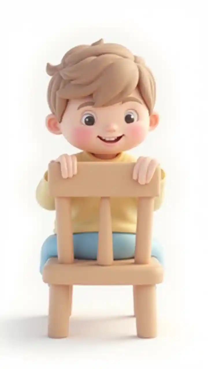 Samuel3d mtoto juu ya kiti icon juu ya background nyeupe na makali , wazi, kutengwa, background nyeupe, katikati ya canvas