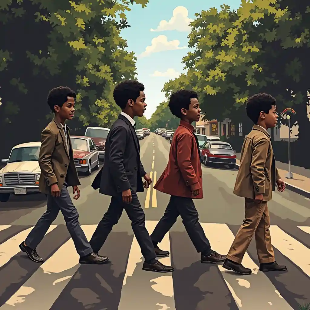 Cover Art iliyoongozwa na Abbey Road ya Beatles na Black American Boy