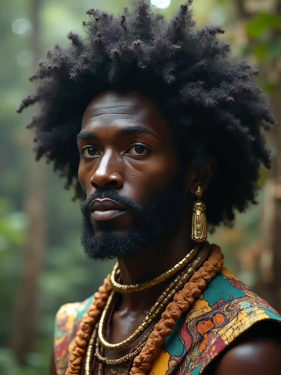 Adalynpicha ya mtu wa kiume, afro, na kugusa futuristic na kwamba mungu wa Afrika. kuongeza mask