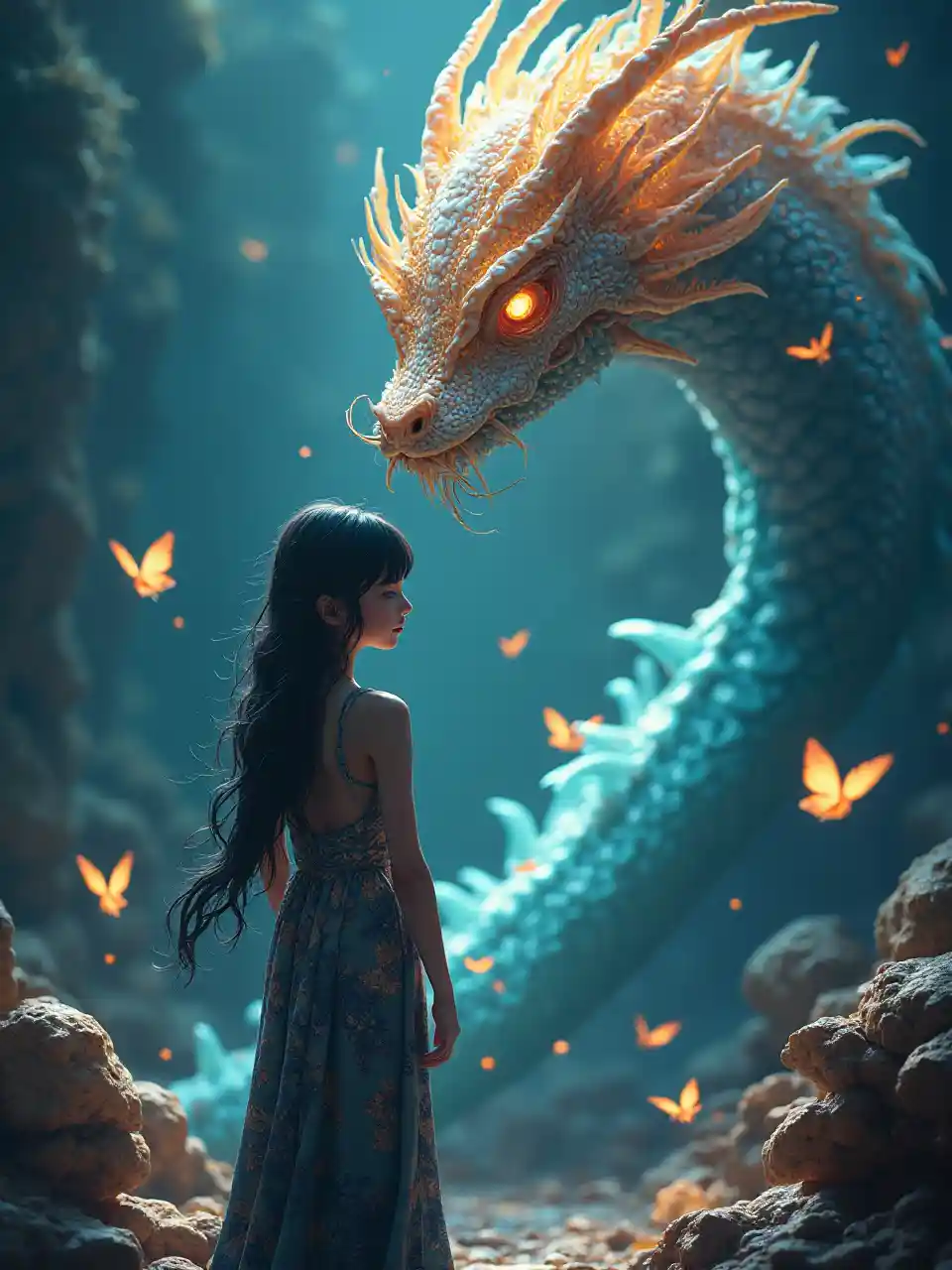 Kazi ya Ubunifu ya AI: Msichana na Joka la Maji katika 16K