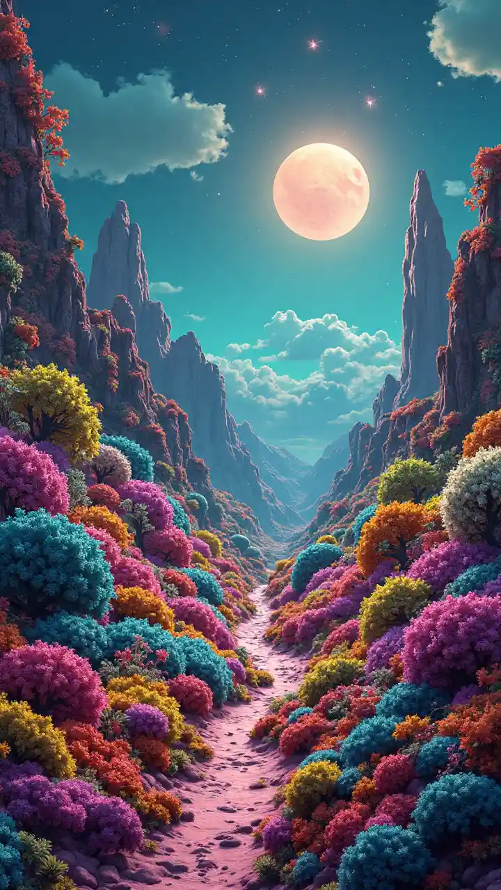 bustani kwenye sayari kigeni, rangi, mimea, trippy, loom