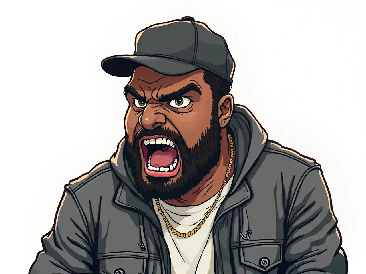 hasira mafuta nyeusi rapper, katika mtindo wa msingi rahisi line sanaa vector comic sanaa juu ya background nyeupe