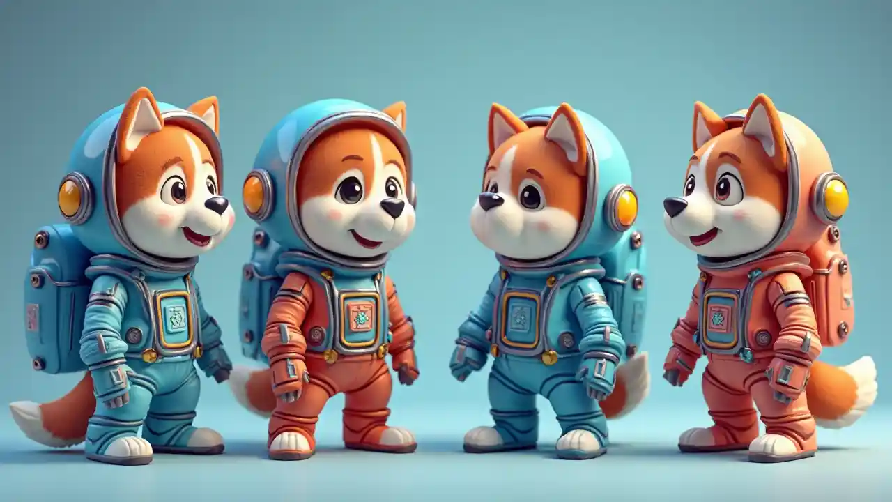 4 ladha na kuvutia ngozi na rangi ubora wa juu wa abiria Akita mbwa na kofia na mengi ya maelezo kwa ajili ya mchezo 2D 3D animated Rangi ya bluu nyekundu 2D mchezo trela