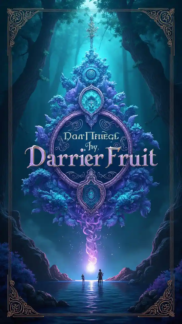 (kwa usahihi herufi "Katika kipande kimoja na Barrieri Matunda"), kuvutia kitabu cover kubuni, mandhari ya kifumbo, rangi ya ndani ya turquoise na violet, background anga na alama enchanting, textures lush kuongeza aura ya kichawi, ujasiri na kuvutia typography, ethereal taa athari radiating kutoka kitabu, high quality illustrations, fantasy genre, inviting and mysterious vibe.