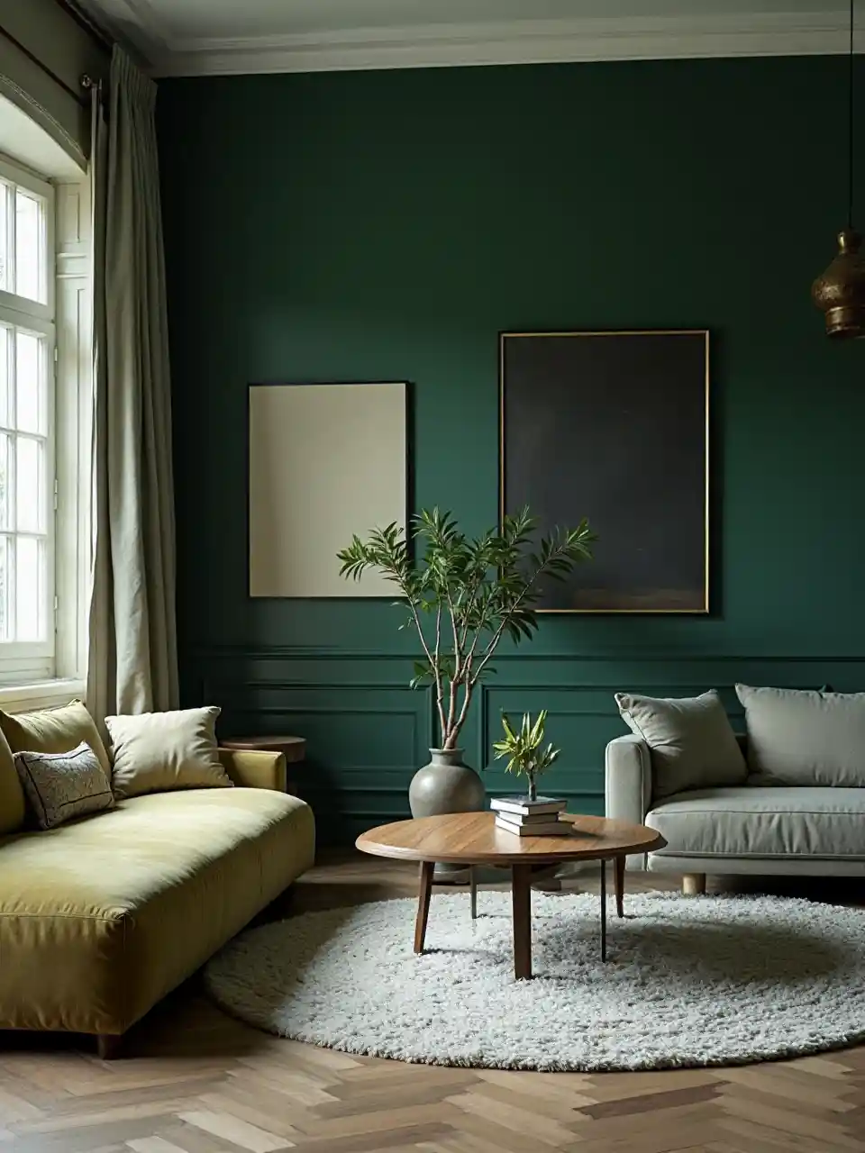LunaUbuni wa mambo ya ndani ya sebule, mtindo wa Bauhaus, kijani.