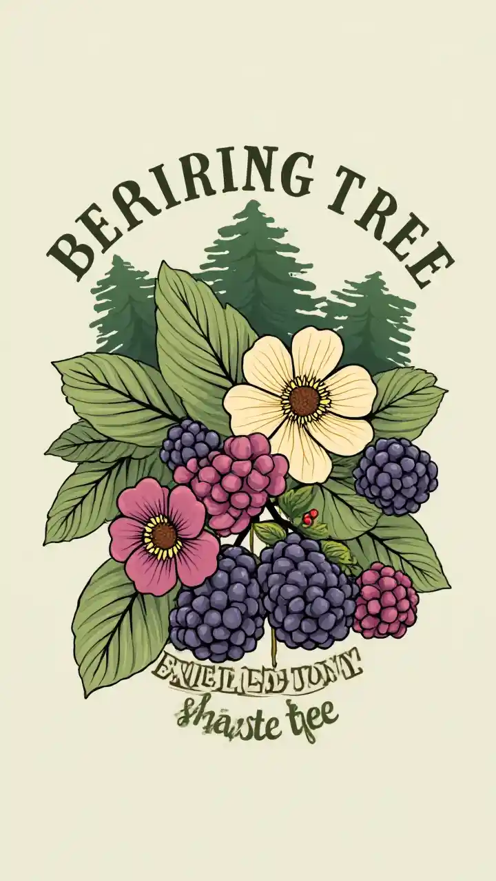 Ethankujenga nembo kwa BearingTree Farm na maua blackberry, asali, na miti