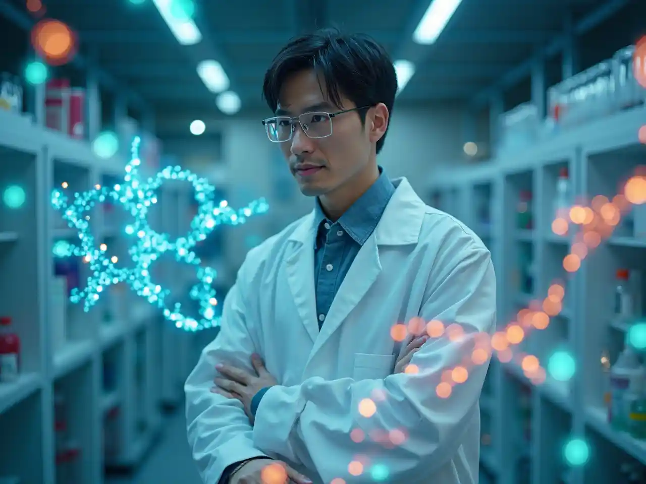 Akiongoza maabara ya teknolojia ya viumbe katika kituo kisicho na maambukizi, mwanamume wa Asia mwenye umri wa miaka 45 hivi anaangaza akiwa na koti la maabara. Violezo vyenye mwangaza na DNA ya holographic humweka, mtazamo wake wa kuona na akili kali inayozalisha ubunifu wa hali ya juu na charisma ya kisayansi katika nafasi ya baadaye.