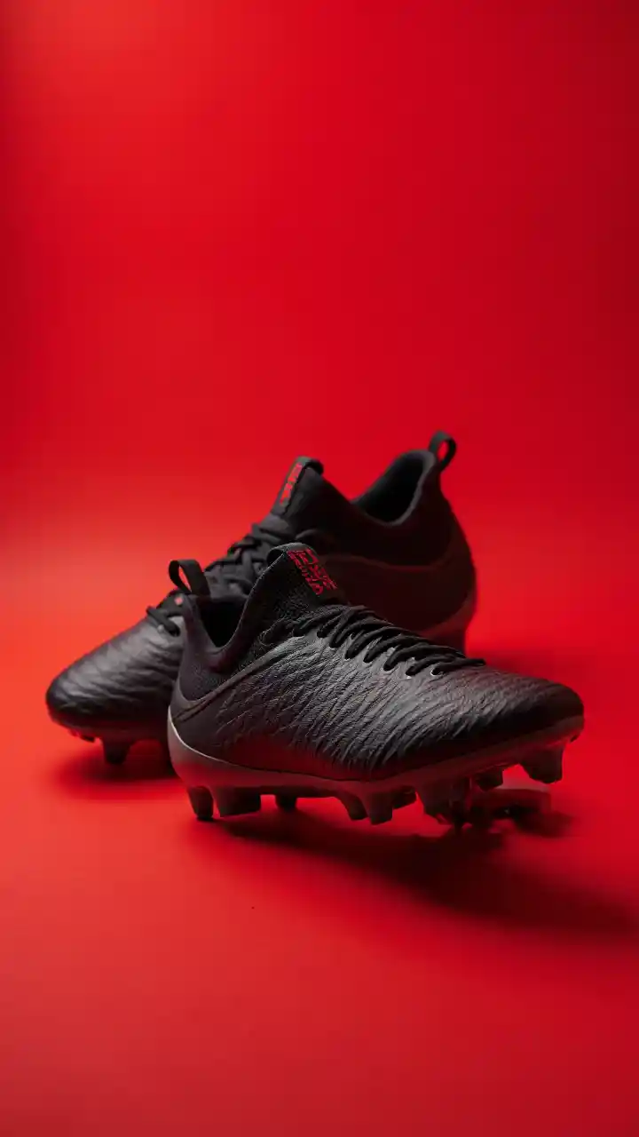 Viatu Nyeusi vya Mpira wa Miguu Kwenye Mandhari Nyekundu