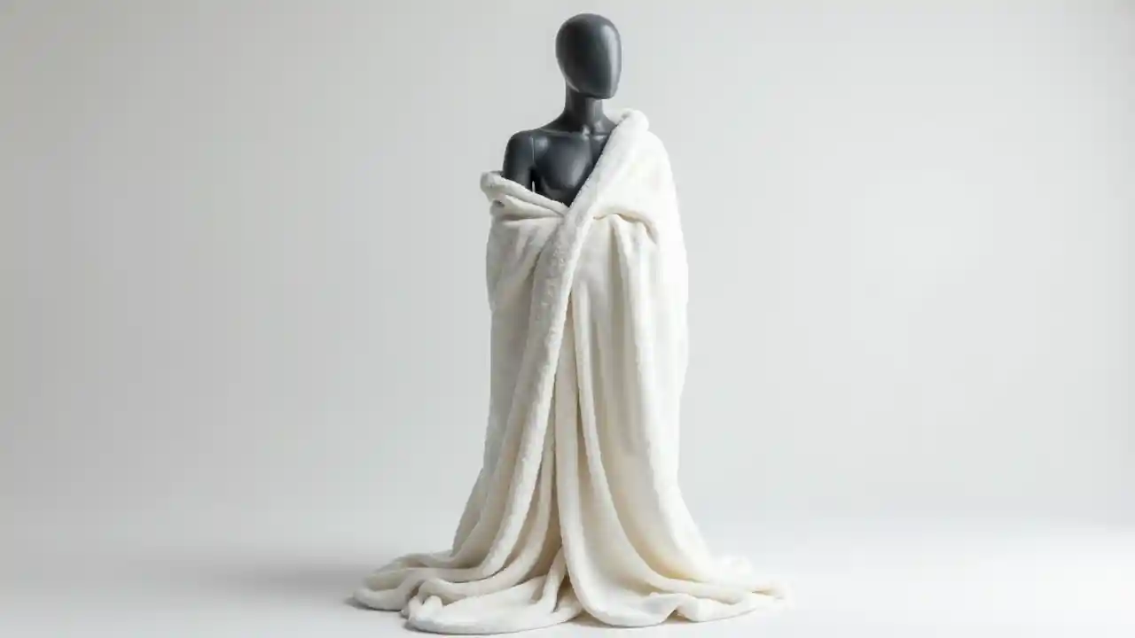 Mchoro wa umbo la kijivu chenye kina kirefu bila uso juu ya msingi mweupe. Mwanasesere huyo amefunikwa kwa blanketi nyeupe. Blanketi nyeupe inazunguka kiolezo na kuanguka sakafuni
