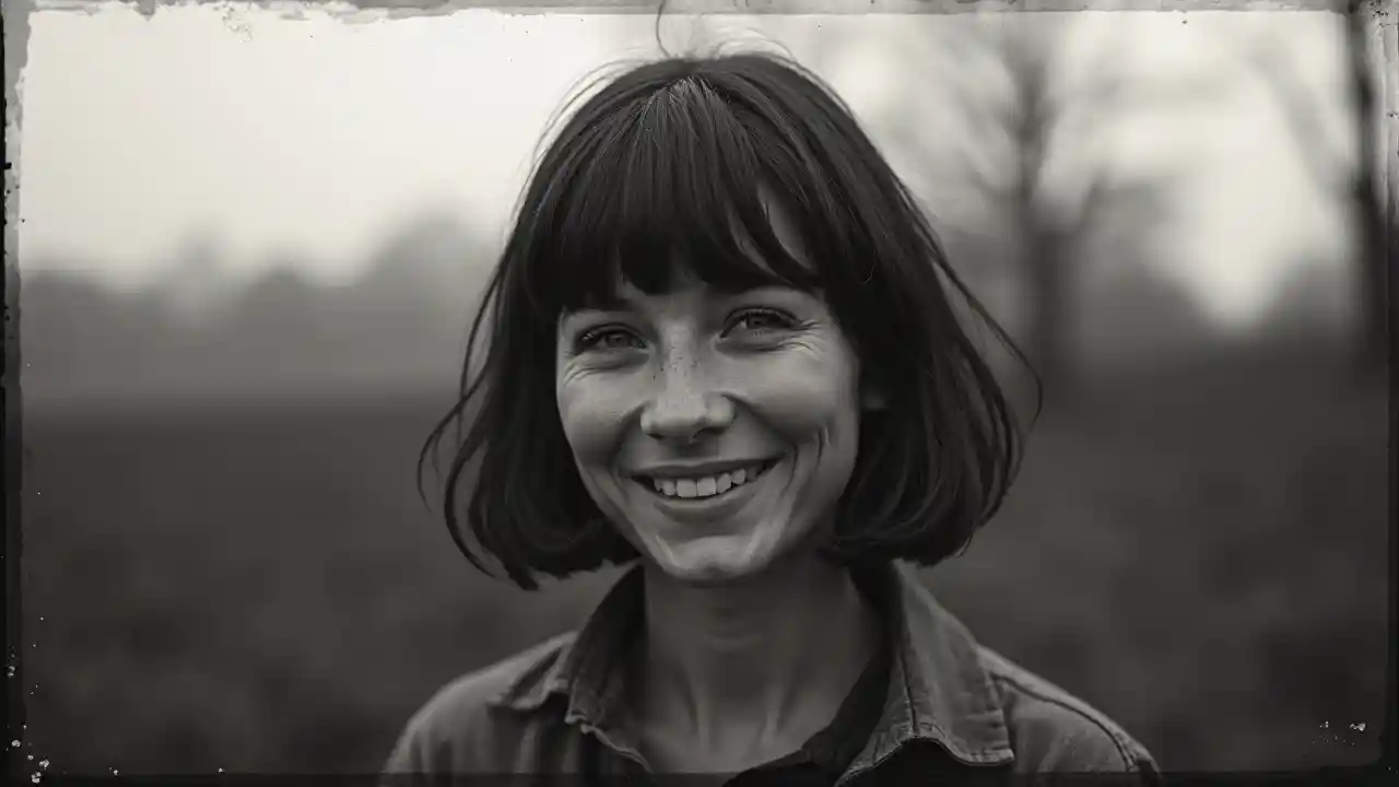 picha ya sahani mvua ya mkulima kipofu na bob nyeusi haircut lakini yeye ni furaha sana