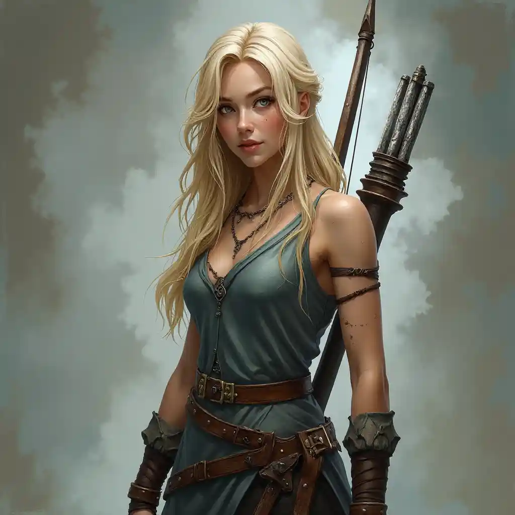 mwanamke mwembamba mwenye nywele nyeupe na macho ya fedha. Ana sura ya uovu ya upinde mgongoni mwake na upanga mfupi kwenye kiuno chake.