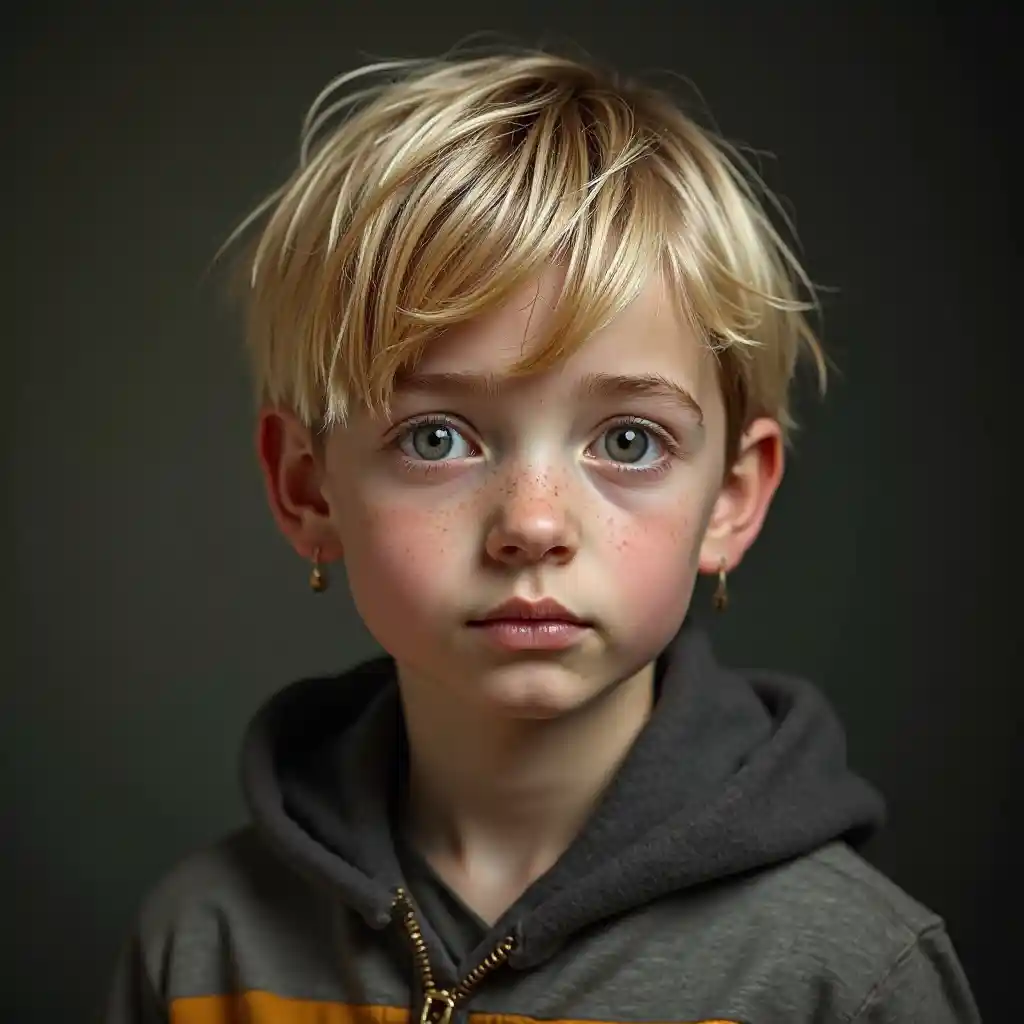 mvulana mwembamba nyeusi blonde na pua enormous na katikati sehemu ya nywele kuhusu miaka 15