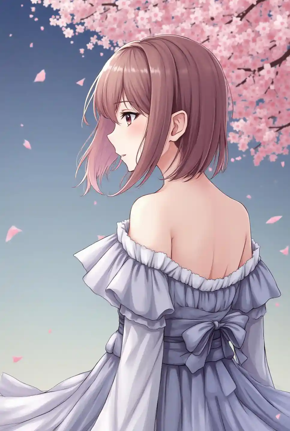 ((cheri maua theluji,mrembo cherry maua)), ((mzuri mungu),1 msichana,mtindo picha,backshot,(off bega:1.3),kingo ya shingo,nyuma o