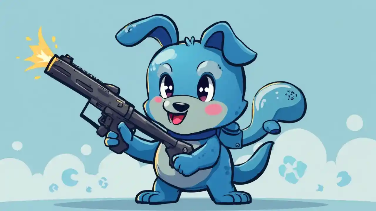 Cartoon Blue Mbwa tabia na bunduki na icons