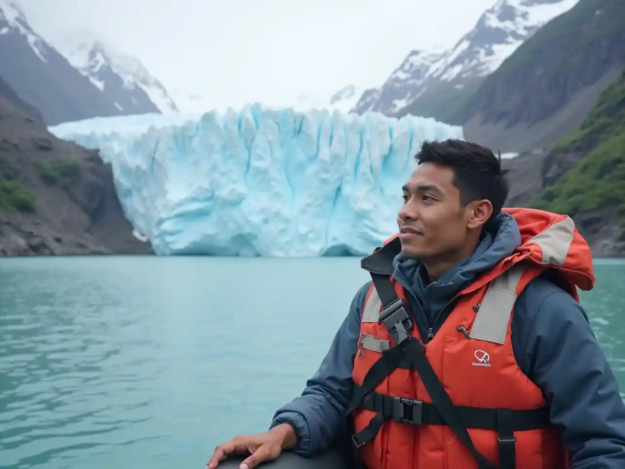 Kijana Akiwa Kwenye Mashua Karibu na Barafu