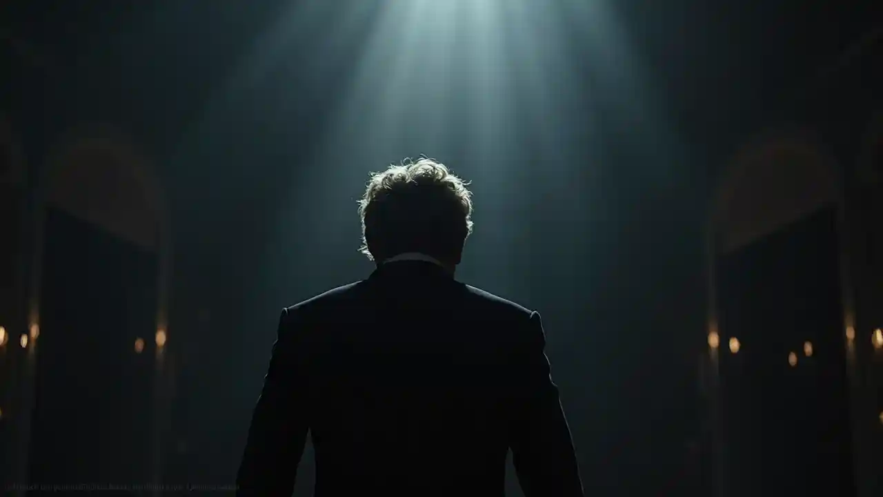 Andrea Bocelli mwimbaji, eneo giza, anga ya giza, risasi epic, kali juu ya maelezo
