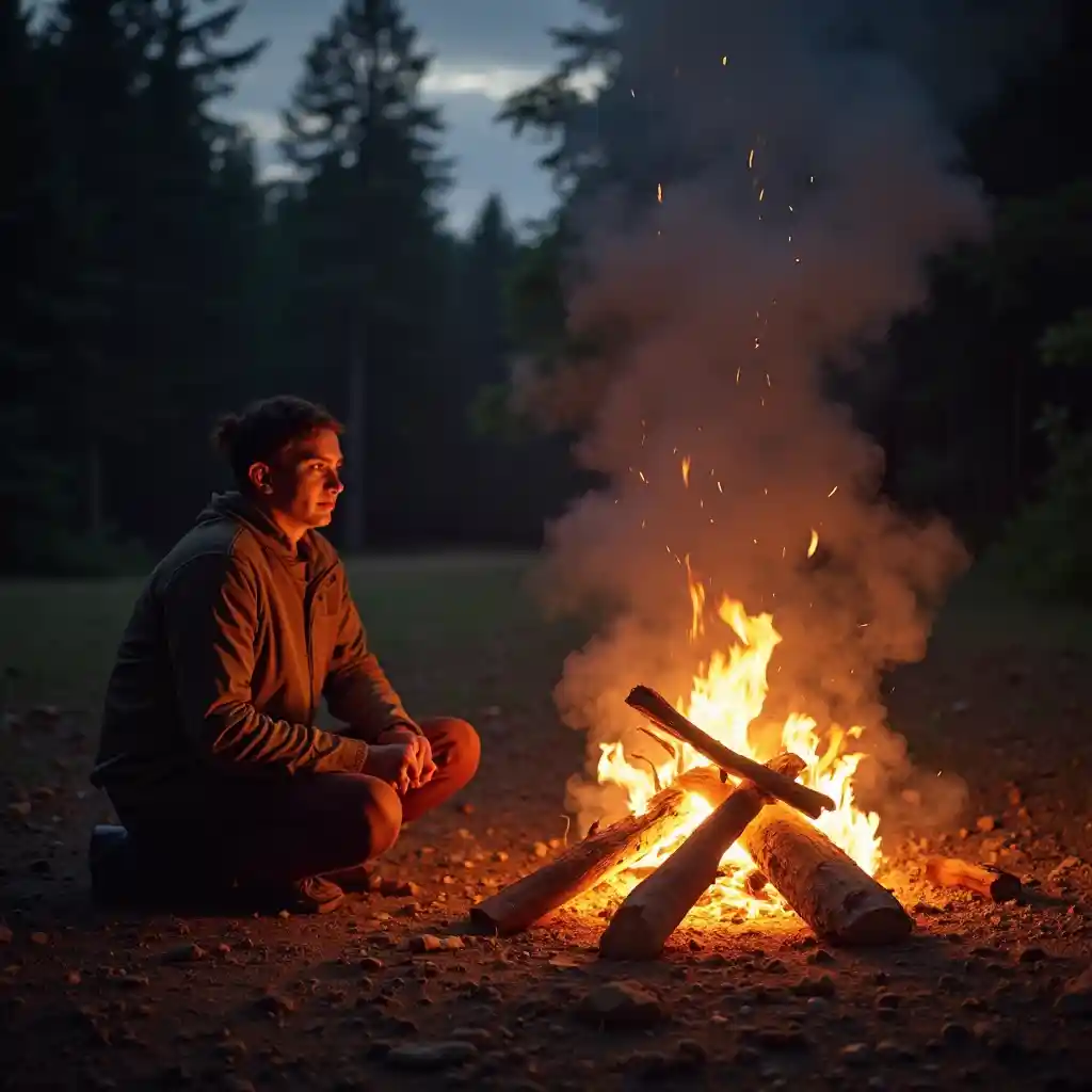 GiselleSauti ya kuni inayowaka juu ya moto wa furaha ya kuni wakati inawaka katika umbali sauti za Wamarekani wa asili kuimba