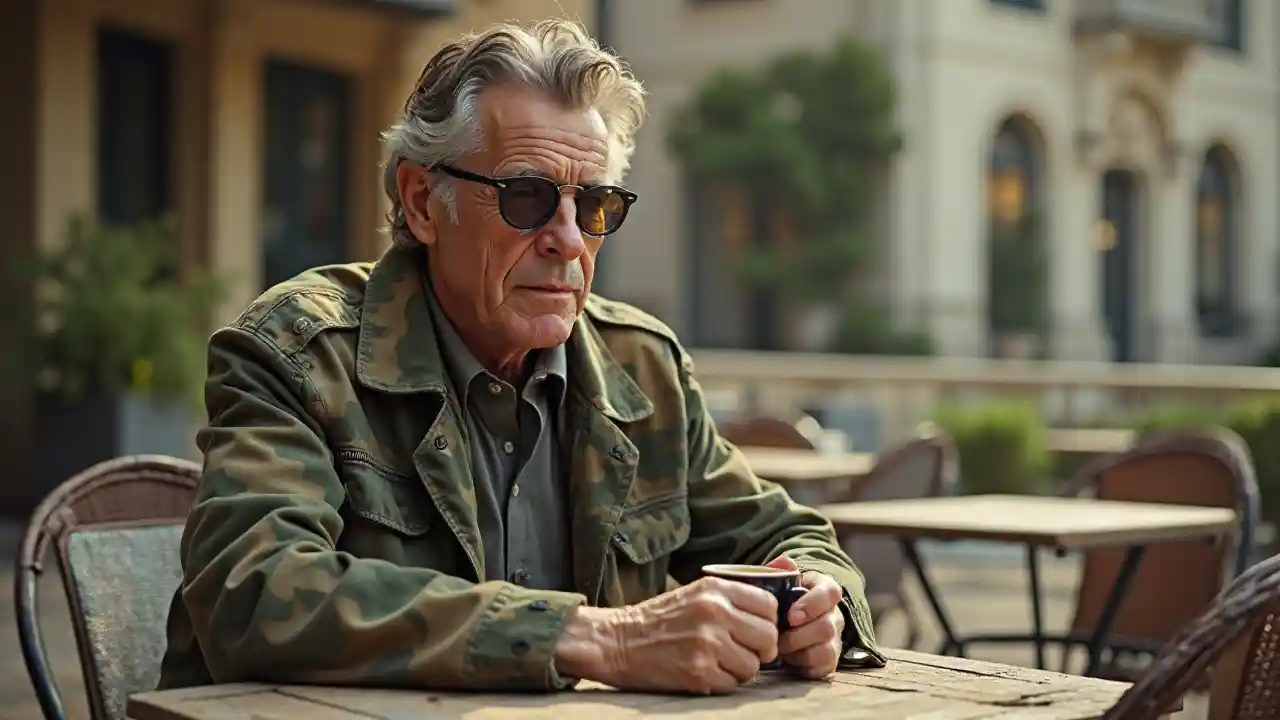 Anthony Bourdain katika Jacket ya Kuficha Kunywa Kahawa