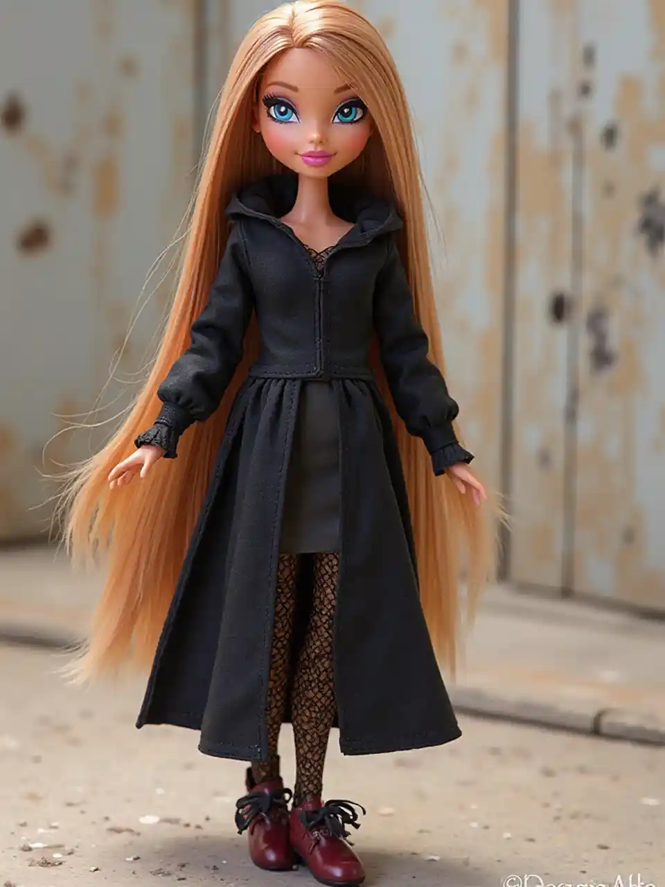 Bratz Doll katika Mavazi Nyeusi 2D kuchora