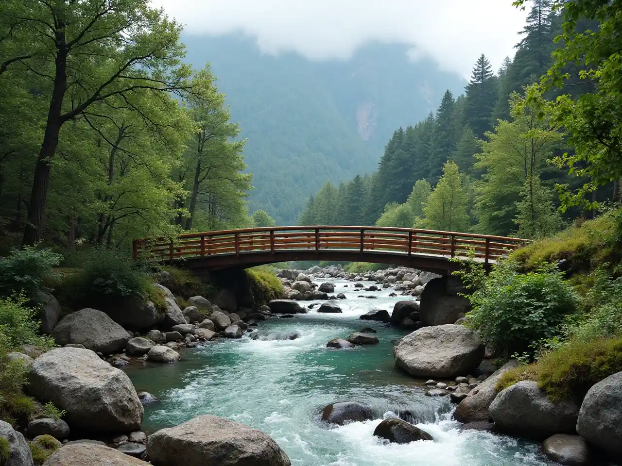 Daraja la Mbao Juu ya Mto wa Mlimani