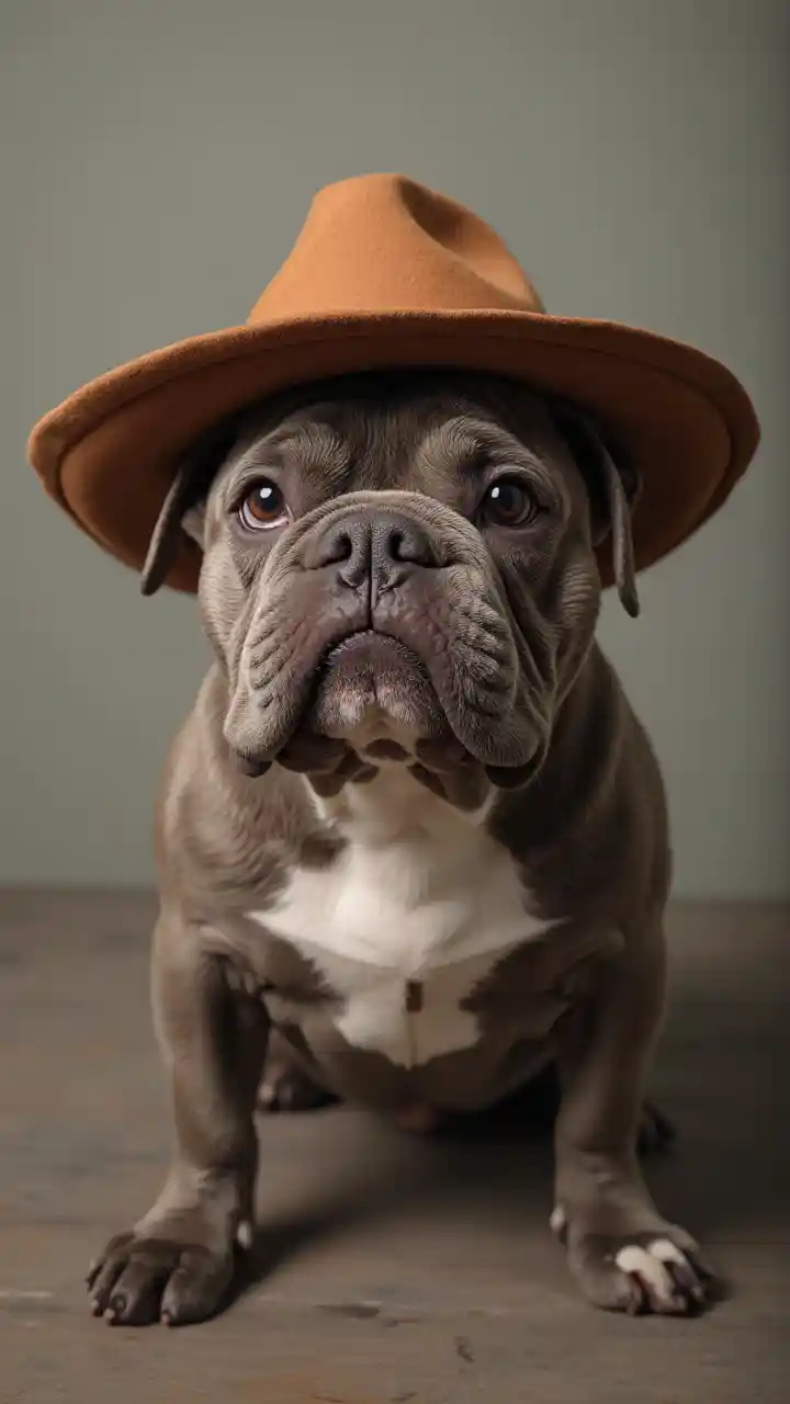 Wyattkahawia kijivu bulldog katika cowboy ko