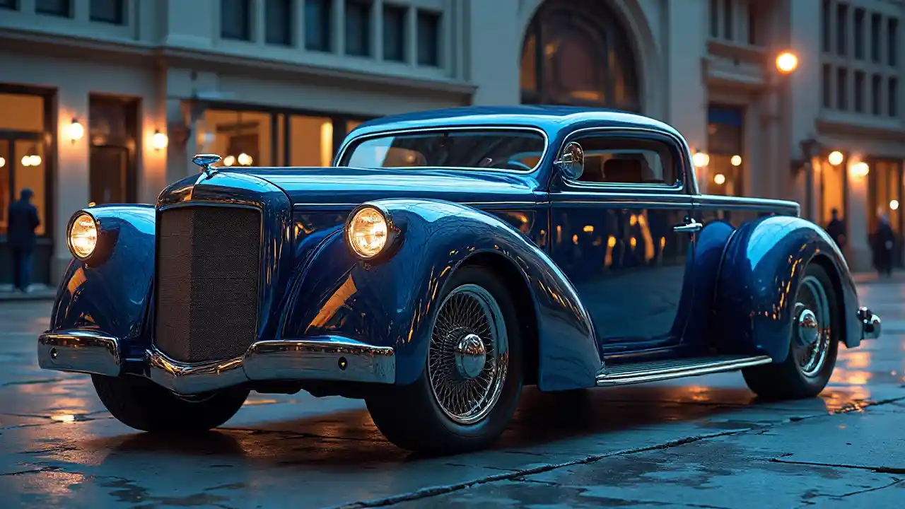 (2030 Cadillac 4 gurudumu gari), glossy chuma kumaliza, (mwanga kutafakari kwa nguvu), nguvu na kifahari kubuni, mtindo wa kisasa, kina kina, high quality, kusisimua mazingira, mijini, reflections mkali, sauti baridi, taa ya sinema, mambo ya kuona, ufundi wa ubunifu, highlights, mtazamo.