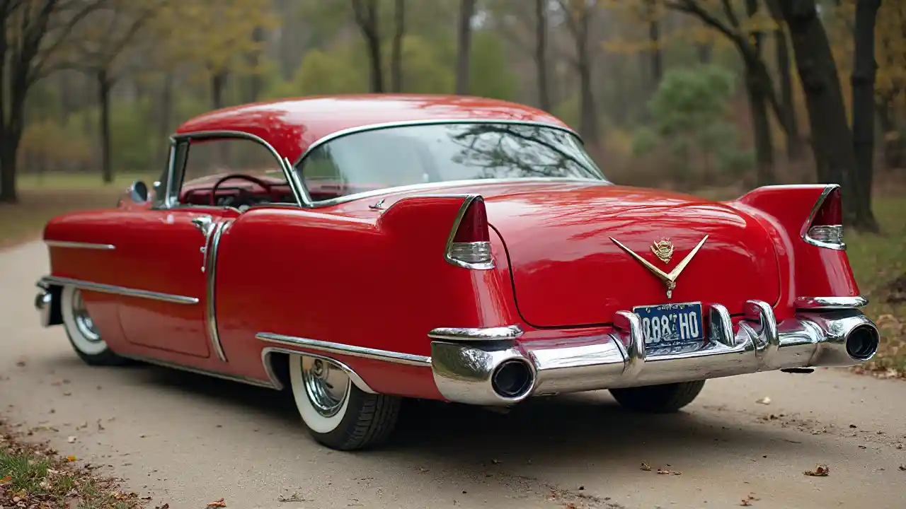 Cadillac ElDorado 1955 rangi nyekundu na background nyeupe