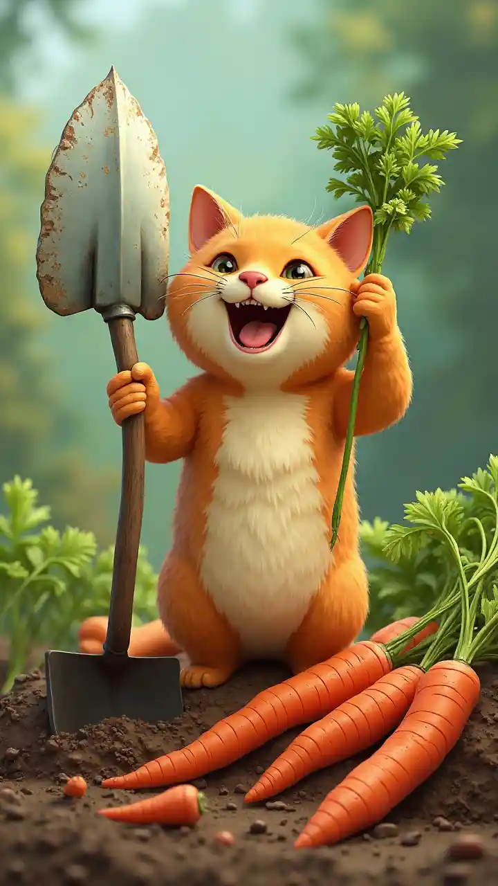 Shangwe ya Kukusanya Karoti Mpya na Paka