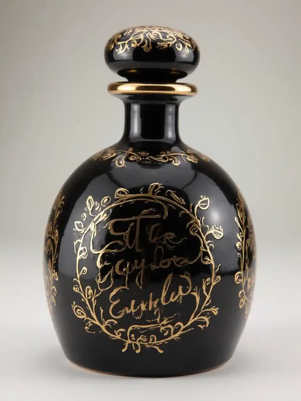 chupa ya tequila extra añejo, hecha de cerámica negra, na maelezo ya dhahabu