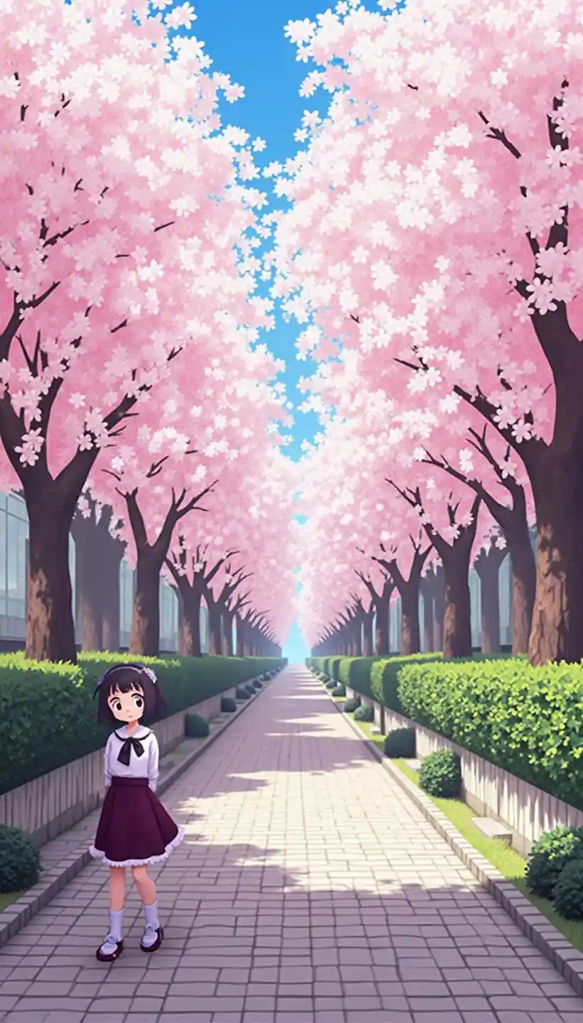 Mandhari ya maua ya cherry, texture cherry, ((uma musume, Rice Shower, msichana, style anime)), mitaani snaps, nzuri, 4K, Professional, photoshoot, Delicate