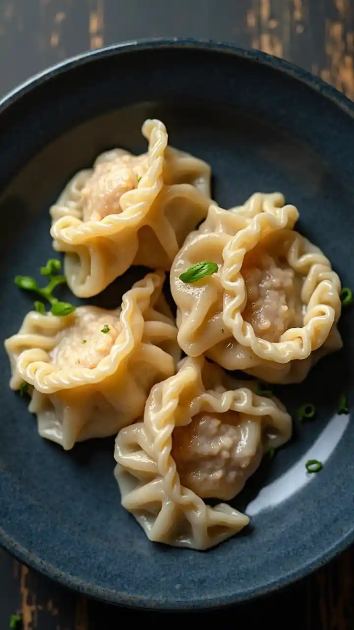 Keki Tatu za Kuku za Shumai Kwenye Bamba la Bluu