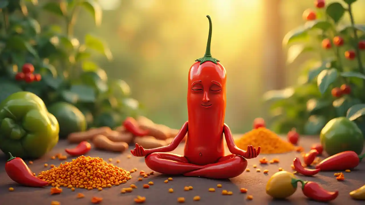 Vikolezo nyuma, katuni pilipili kutafakari.