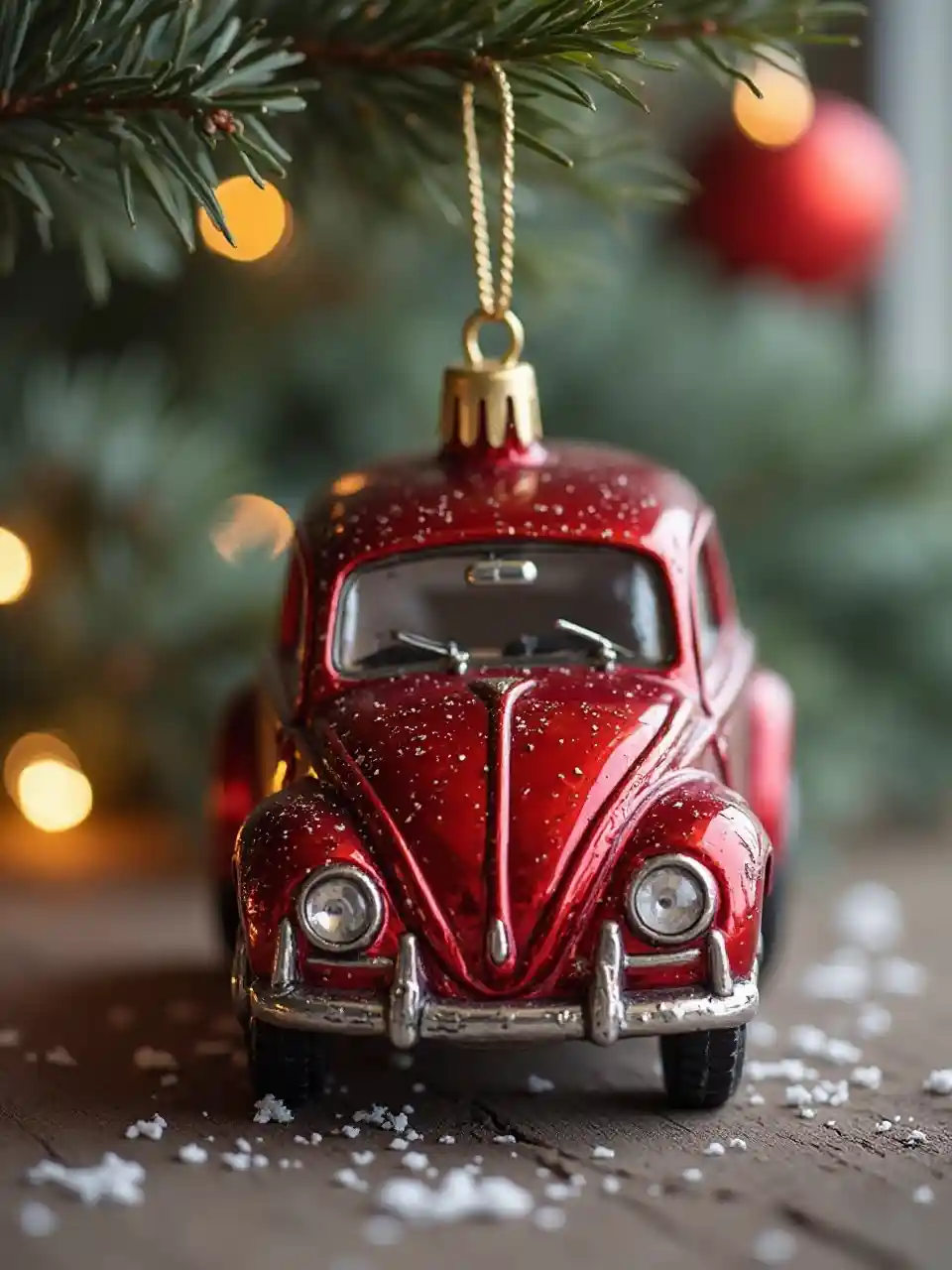 JocelynKondoo-mwitu mwekundu wa VW aliyefanywa kwa kioo na mapambo ya chuma, mapambo ya Krismasi