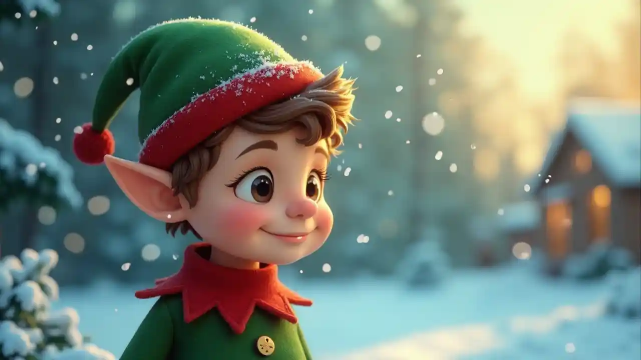 Elf wa Krismasi Katika Mtindo wa Katuni na Nyuma ya Theluji
