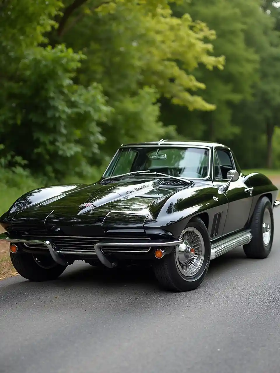 Kwa kuwa na umbo la nje lenye kuvutia na nyeusi, gari la kifahari la Corvette huvutia kwa misuli yake yenye misuli na rangi ya chromium. Gari hilo liko mahali panapoonekana vizuri kwenye barabara iliyofunikwa kwa mawe, na pande zake zimefunikwa na mimea mingi, na hilo linadokeza mazingira ya nje yenye amani, labda wakati wa mchana. Sura yake ya hewa ni yalionyesha na kumaliza kutafakari ambayo inaonyesha majani ya karibu, wakati bold branding mbele na kipekee gurudumu kubuni kuongeza style. Hali ya jumla huonyesha uhakika na kutamani, ikionyesha kiini cha ufundi wa magari ya Marekani kwa kupendeza na nguvu.
