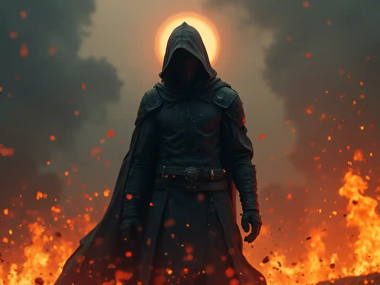 Matthewgiza kanzu mtu bila uso kushikilia dunia juu ya moto