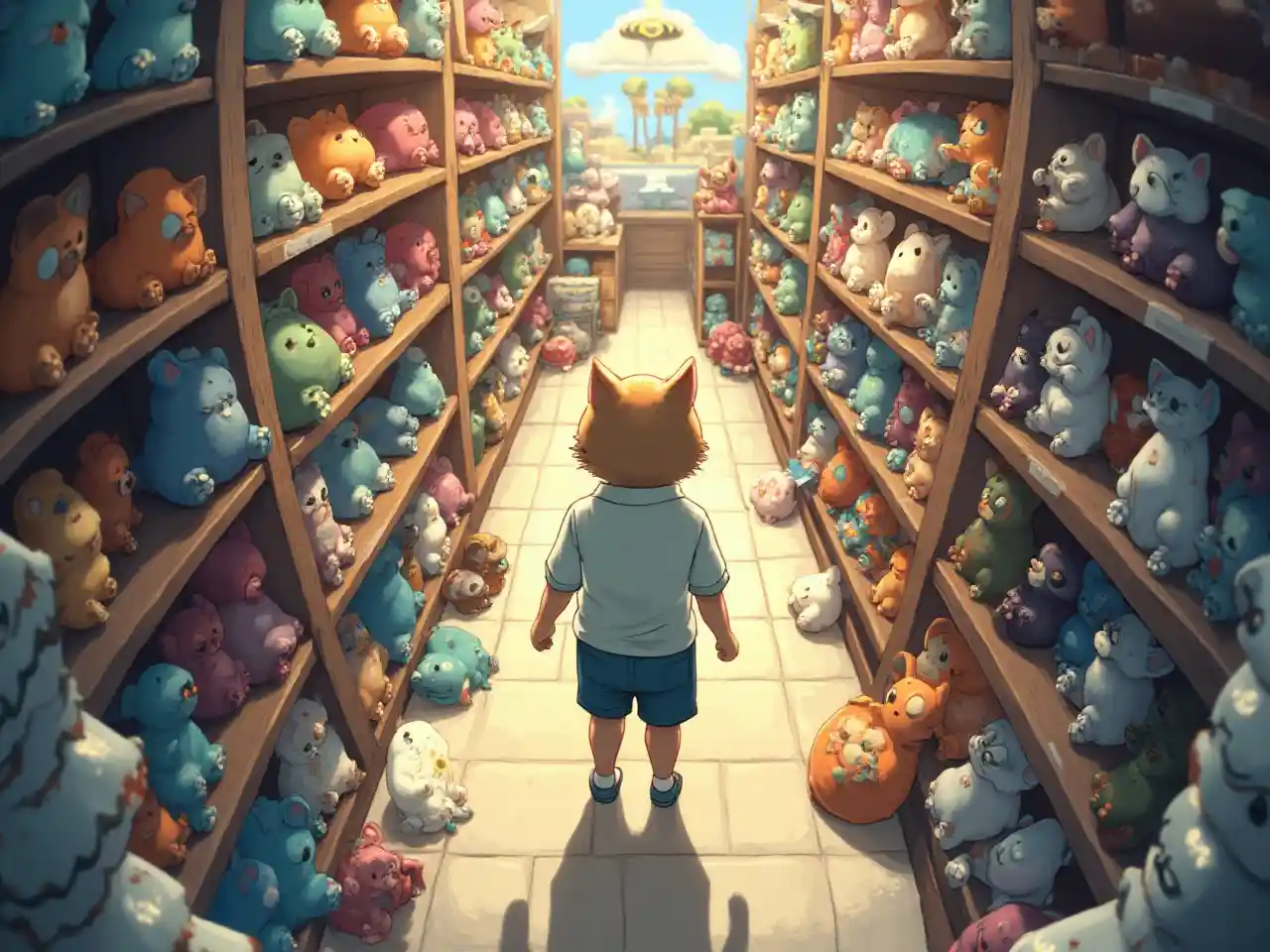 (masterpiece, ubora bora), (rangi:1.4), kutoka juu, solo, 1 paka amesimama katika duka na mengi ya binadamu kwenye rafu na mfuko wa mambo, kina cha, fishye lens