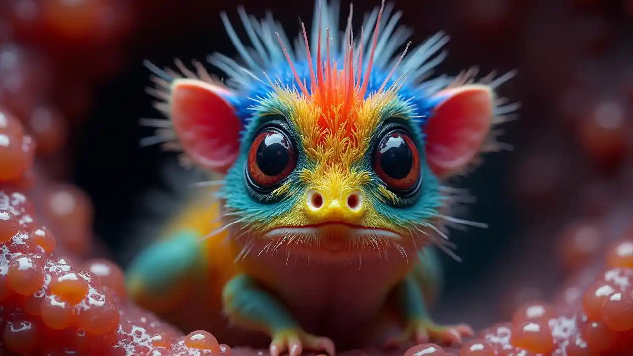 picha ya karibu ya kiumbe wa ajabu lakini kuvutia rangi ambayo wanadamu wangeliita Cendraasih kama walikuwa wameona moja, kiumbe hiki anaishi katika pango ya jelly, kiumbe hiki ina kawaida macho makubwa lakini ni kabisa cute, ina mchanganyiko wa manyoya na manyoya katika rangi zote zinazojulikana kwa binadamu