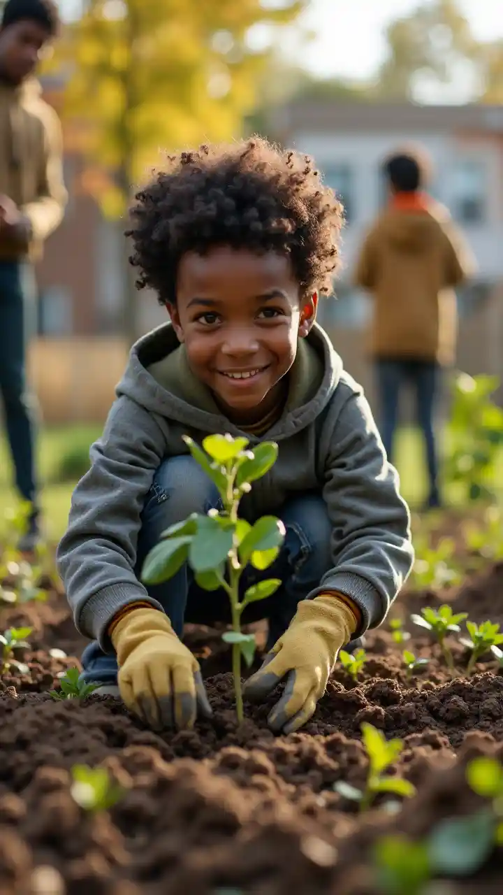 Kupanda mti katika bustani ya jamii, kijana mweusi mwenye umri wa miaka 10 na kupotea huvaa hoodie na glavu za bustani. Majirani wenye kutabasamu na maua yanayopambazuka humweka katika mazingira yenye joto ya mijini, na kuchimba kwa uangalifu kwake hutoa tumaini na kufanya kazi kwa pamoja.